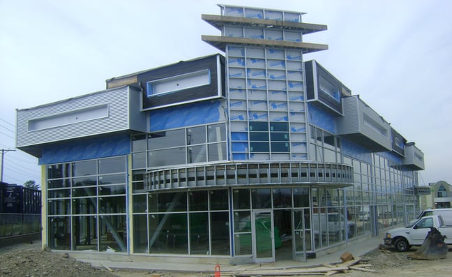 12,000 sq ft retail area. Services provided for this project were exterior steel-stud framing, parapet and canopy plywood, dens glass sheathing, Blueskin, insulation, interior demising walls, complete drywall, and T-bar ceilings.